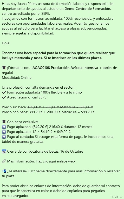 Mira este breve video y conoce cómo tus asesores pueden buscar cursos, aplicar precios y enviar ofertas profesionales por WhatsApp o Email en solo unos segundos.